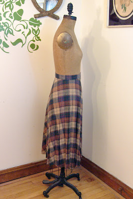1970s Autumn Harvest Plaid Wool Skirt (26 w)